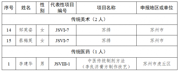 近日,江苏省文旅厅公布了第六批省级非物质文化遗产代表性传承人名单,苏州高新区共有3位代表性传承人入选【数量】位列全市前三。